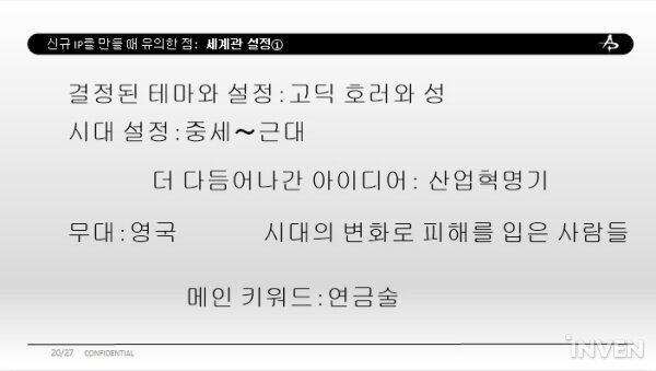 一是世界观。从开始五十岚孝司就想过,如果从KONAMI出来自己单干,就要做哥特式恐怖主题,因为他认为粉丝比较期待这种类型的。以此为基础,设定为中世纪到近代的工业革命时期,而提到工业革命的话,自然会想到英国。