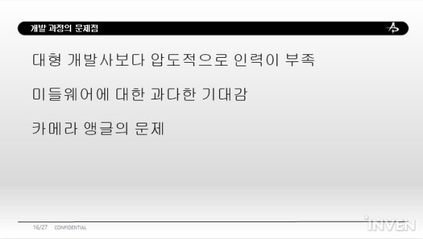 在物理shader,特别是lighting工作中,也发生了意想不到的问题。因为画面角放低了,增加了布景的深度,光源没能照到底,所以光线和阴影看起来很不协调。 本来想在那个部分用LFO,但是没有成功,结果不得不一个一个地放亮光,费了很大的劲儿。之后画面角度变大,觉得用vertex shader来修饰就可以了,但尝试后又出现了其他问题,所以他们还在考虑新的技术。
