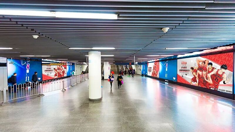 好的营销,不仅仅是多渠道的线上覆盖,同时也要有立体层次感。广告的通俗定义就是“广告告知”,从理论角度分析,广告至少需要3次以上被看到,才会被记忆。《灌篮高手 正版授权手游》的广告通路,除了应用平台的推荐(App Store及各大安卓平台)、线上广告之外,还覆盖了一定的线下渠道。上海人民广场地铁站投放的LED巨幅动态广告,《灌篮高手 正版授权手游》直接拿下目前魔都人流大的地铁换乘站,以多达10块的巨幅LED屏幕叠加循环播放的《灌篮高手》主题曲制造了一个几乎泪目的青春记忆空间。路人驻足,粉丝打卡,新的魔都网红打卡点在短短数日就已形成。