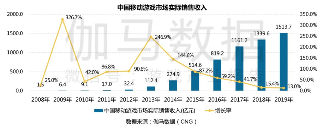 2019年,中国移动游戏市场趋于成熟,实际销售收入1513.7亿人民币,增速降为13%。用户对精品、创新的需求加强,这两点将是未来移动游戏市场发展的重要推力。