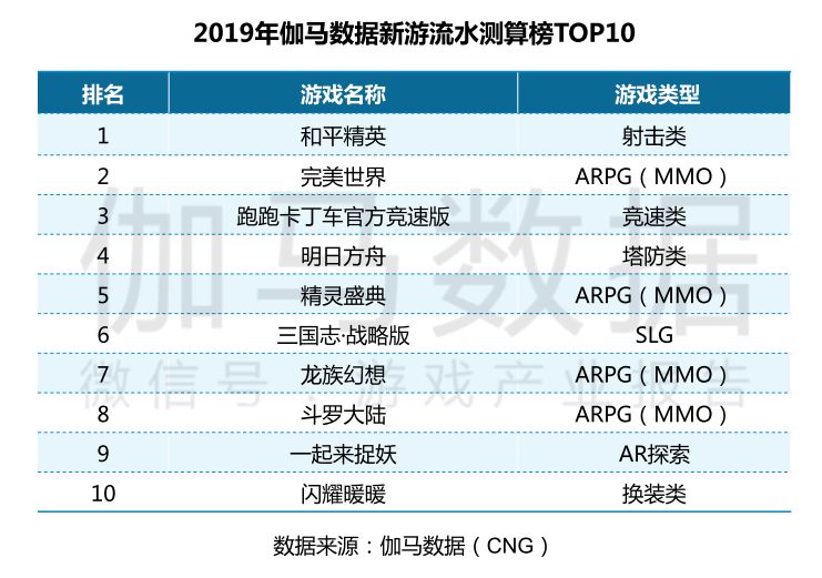 而2019年新游流水测算帮TOP10中,ARPG类占4款,包括《完美世界》、《精灵盛典》、《龙族幻想》和《斗罗大陆》。这主要是受中国游戏市场环境影响,ARPG类拥有较高用户基数,企业也更偏向生产该类游戏。