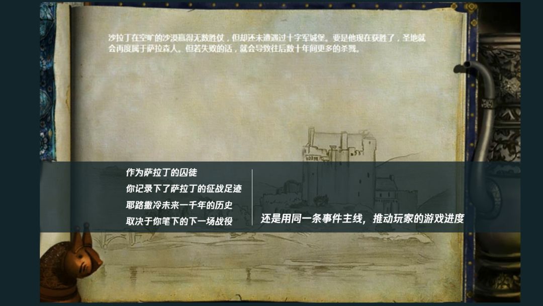 再例如《帝国时代》这类参考了历史的游戏,在剧情模式的一关,玩家作为一名十字军战士,被萨拉丁俘虏了,然后忍辱求生,一路记录萨拉丁在占领耶路撒冷后对基督徒所做下的事情。虽然有感动和反转,但这就是仅有的一条剧情线,它只会按照历史的记载去推动,玩家没有逆天改命的机会。