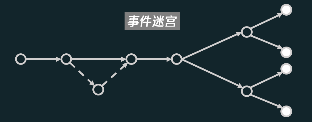 第二种融合设计便是树状剧情与多结局探索类玩法的结合,它的设计结构就如图上所示,被称为事件迷宫。