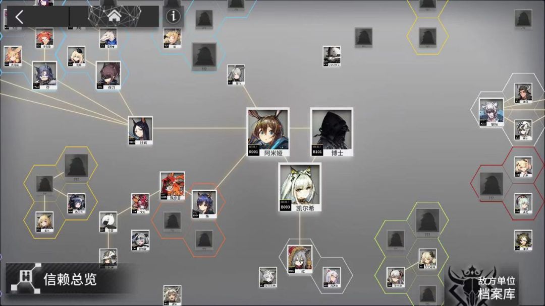 有些人会觉得,这种设计方式是否只适用于小众游戏?其实今年的爆款《明日方舟》中的人物档案系统就是一个缩略的碎片剧情设计:我是谁,我从哪里来,我到哪里去,都需要玩家提高干员的熟练度和与他/她的关系值来解锁。