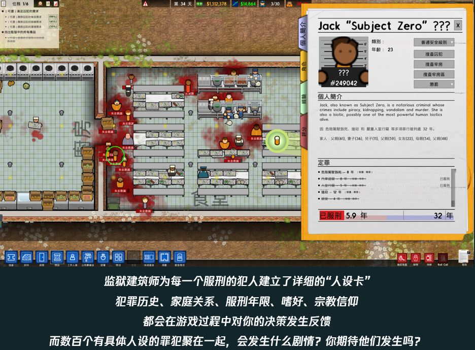 再看下《监狱建筑师》。区别于《钢铁雄心》的设计,这款游戏是以“人”为单位来生成事件组的,每一个凡人都会有随机生成的人设,而当玩家在管理这些人组成的监狱时,凡人之间的冲突便可以衍化出不同的事件组。同样的设计方式也应用在了《过山车大亨》、《游乐园设计师》等等游戏中,这种设计方法早已有之,是模拟经营游戏中设计自发生剧情的实用方法。