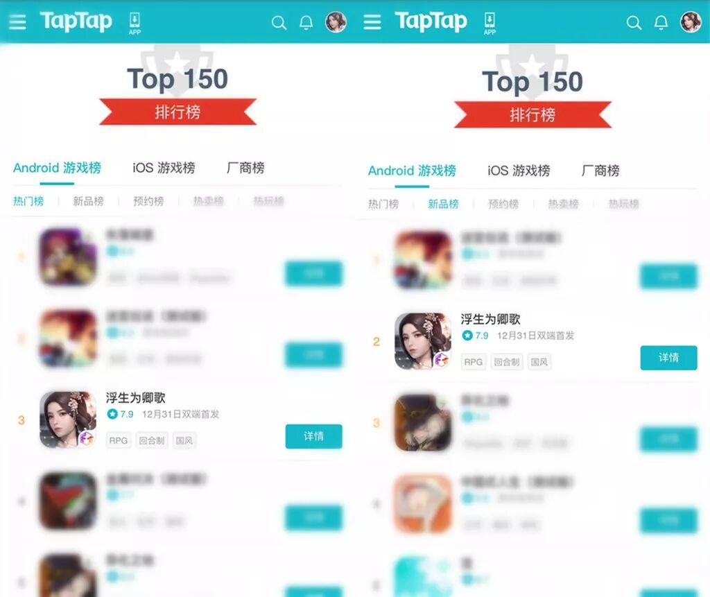国内女性游戏研运厂商玩友时代,开年之初推出了3D开放式古风养成手游《浮生为卿歌》,一经上线迅速蹿升各大榜单,截至目前已拿下了中国区iPad游戏总榜(免费)榜首、iPhone游戏总榜(免费)Top2的好成绩,角色扮演类游戏以及策略游戏同时高居冠军之位。而在玩家社区TapTap上更是拿下热门榜第3、新品榜第2的位置。