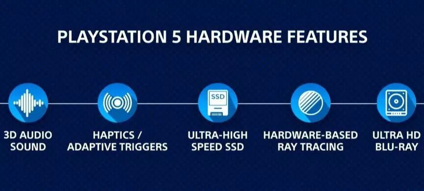 此外,索尼还总结了此前公布过的PS5五大特性:3D 环绕声、触觉自适应触发器、超高速固态硬盘、基于硬件基础的光线追踪以及超高清蓝光。