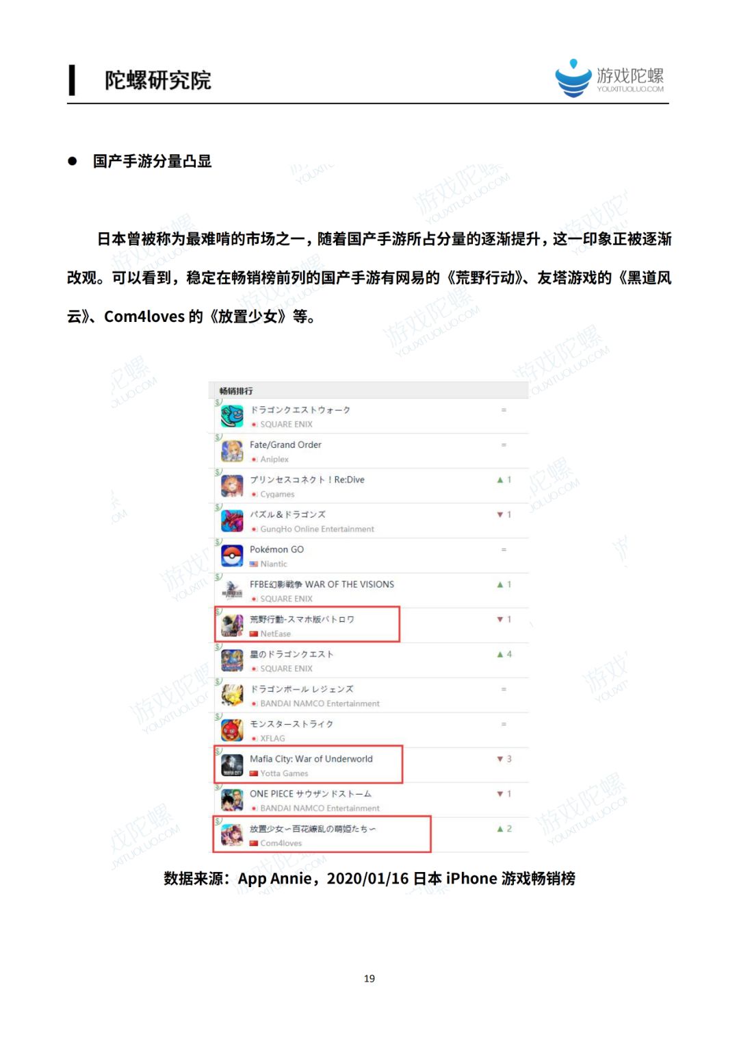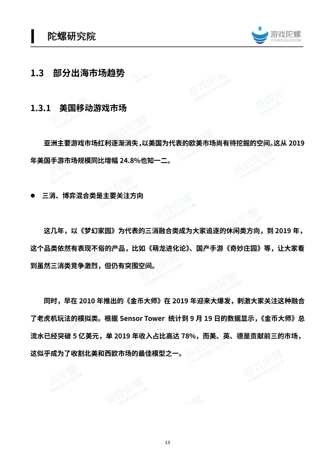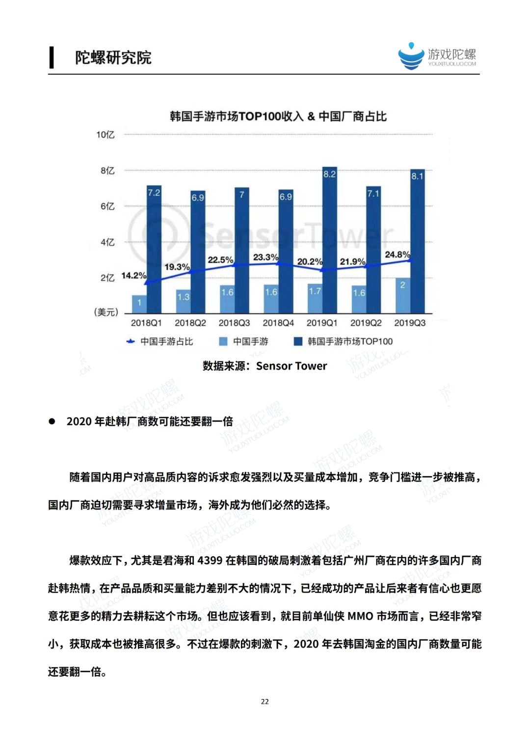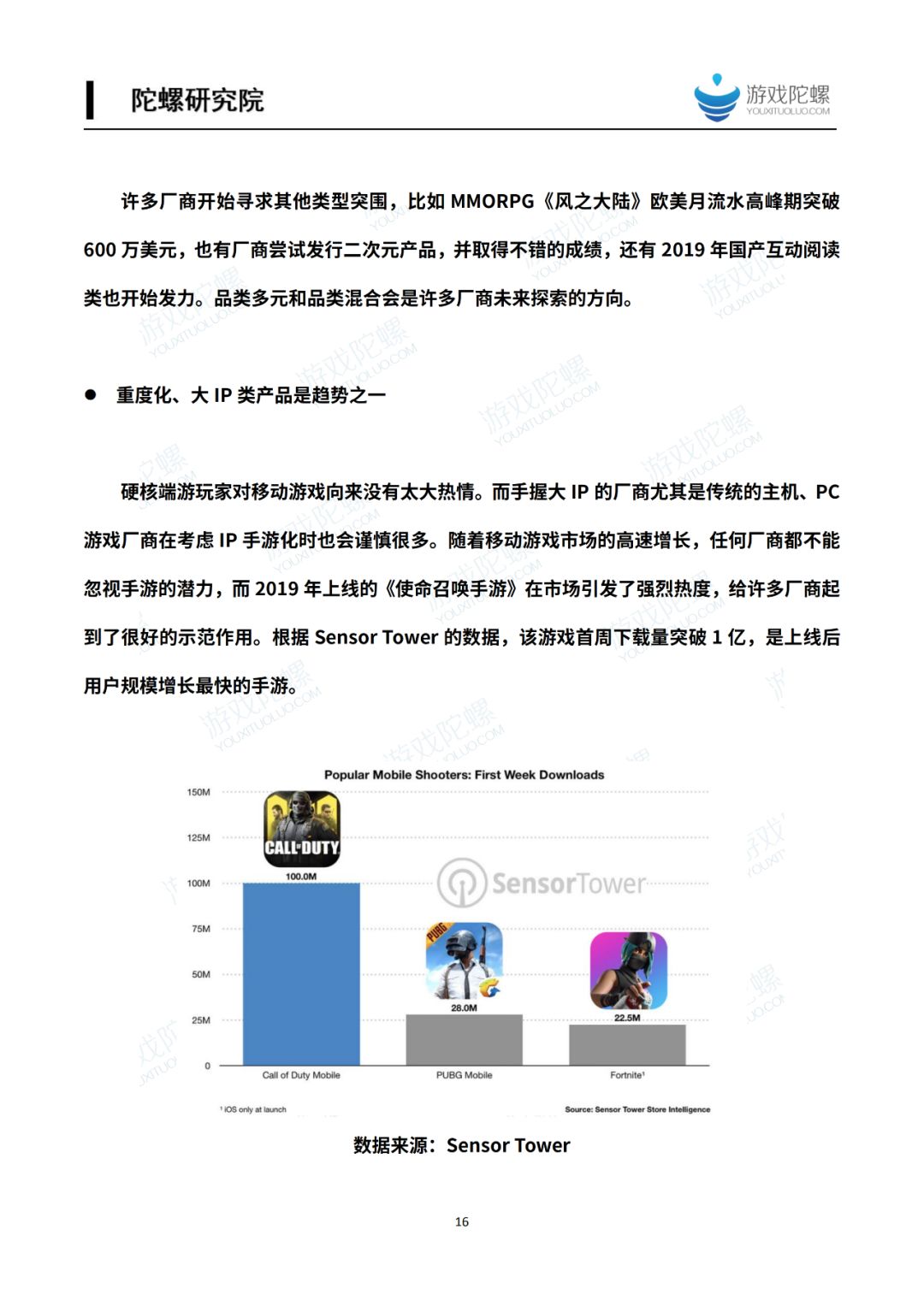 导语:2020年1月22日,陀螺研究院联合Sensor Tower共同发布《2019中国移动游戏产业发展报告》,本次带来的是报告中《海外篇》的详细内容。