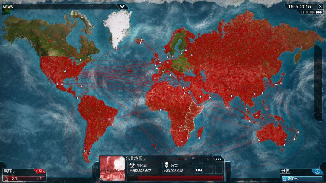 这个春节假期,我相信许多人一定和我一样,或尝鲜或重温,把《瘟疫公司》装进了自己的手机和电脑。我们带着游戏里既定的目标,在传染性、严重性、致死性三大特性间做出艰难抉择,与各国的卫生医疗水平博弈,誓要完成一场灭绝全人类的“伟大使命”。