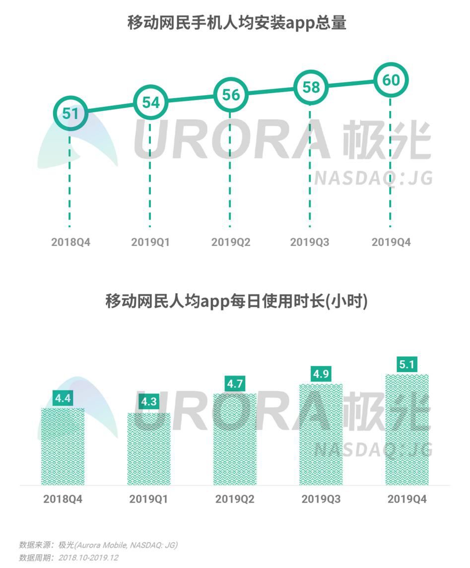 2019年Q4人均安装App达60款,手机游戏用户使用时长占比降至7.4%