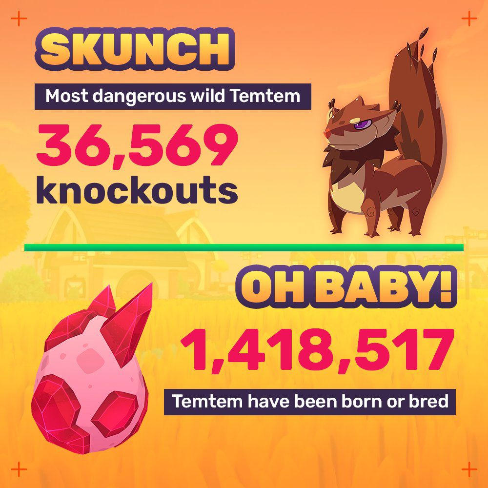 在公布销量的同时,官方表示将为游戏带来更多新的内容,并且还揭露了游戏中的一些相关数据:玩家已经在游戏中孵化出了超140万只腾兽,有5.42%的玩家拥有Luma Temtem,以及Kinu是很受欢迎的腾兽,而Volarend是ban率较高高的腾兽等。