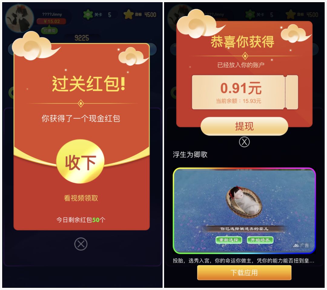 一位休闲发行商告诉游戏陀螺;“以拼多多的例子来看,它依靠下沉用户,进行红包裂变的打法发展到现在的规模,证明本身这个模式是有市场的,也是被市场所需求的。目前国内存在大量非重度游戏玩家,‘红包’激励类游戏有着特定且持续的市场需求。”