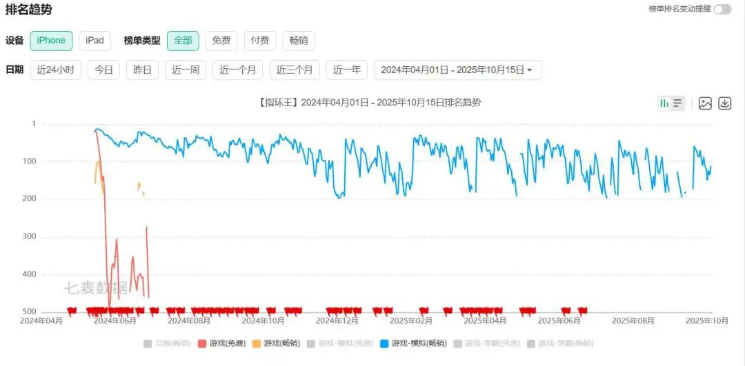 这一机制革新也游戏在初登海外市场时赢得了亮眼成绩。data.ai数据显示,《指环王:纷争》国际服于2021年9月23日上线,成功登陆全球超100个市场,更在44个市场中跻身iOS游戏畅销榜TOP10。但其巅峰状态未能持久,以美国市场为例,游戏最高排名至第33名(2022年6月),随后热度便迅速滑落,约两年后已跌出200名开外。