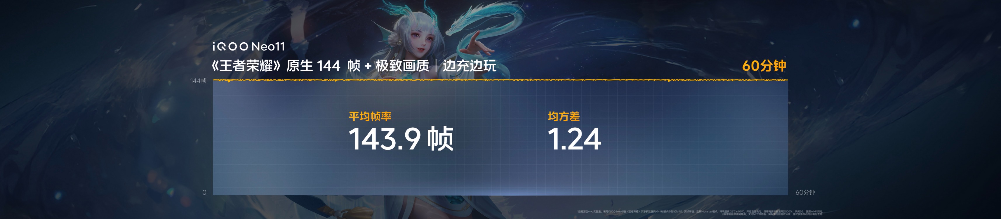同时,Neo11 通过 KPL 比赛用机 144 高帧测试认证,首批适配《王者荣耀》原生 144FPS 高帧模式,“玩王者就选 iQOO”准没错。