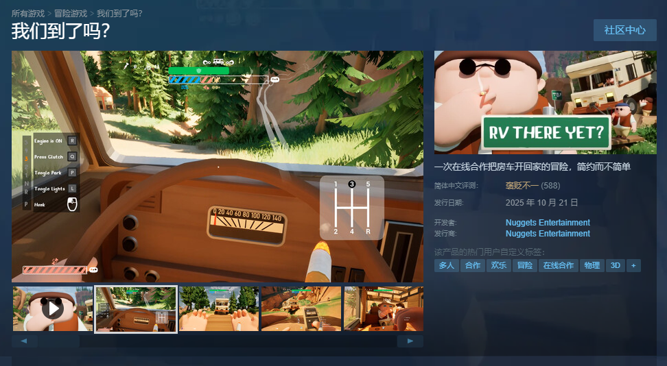 也许很多人没有注意到,就在《逃离鸭科夫》在国内爆火,俘获一票搜打撤玩家芳心的同时,一款名为《RV THERE YET(我们到了吗?)》的房车露营题材多人在线合作游戏在海外悄然走红。数据显示,截至目前《我们到了吗?》已在Steam获得超2.6万条评论,好评率86%(特别好评);此外,其Steam同时在线玩家峰值也一度突破了10万。