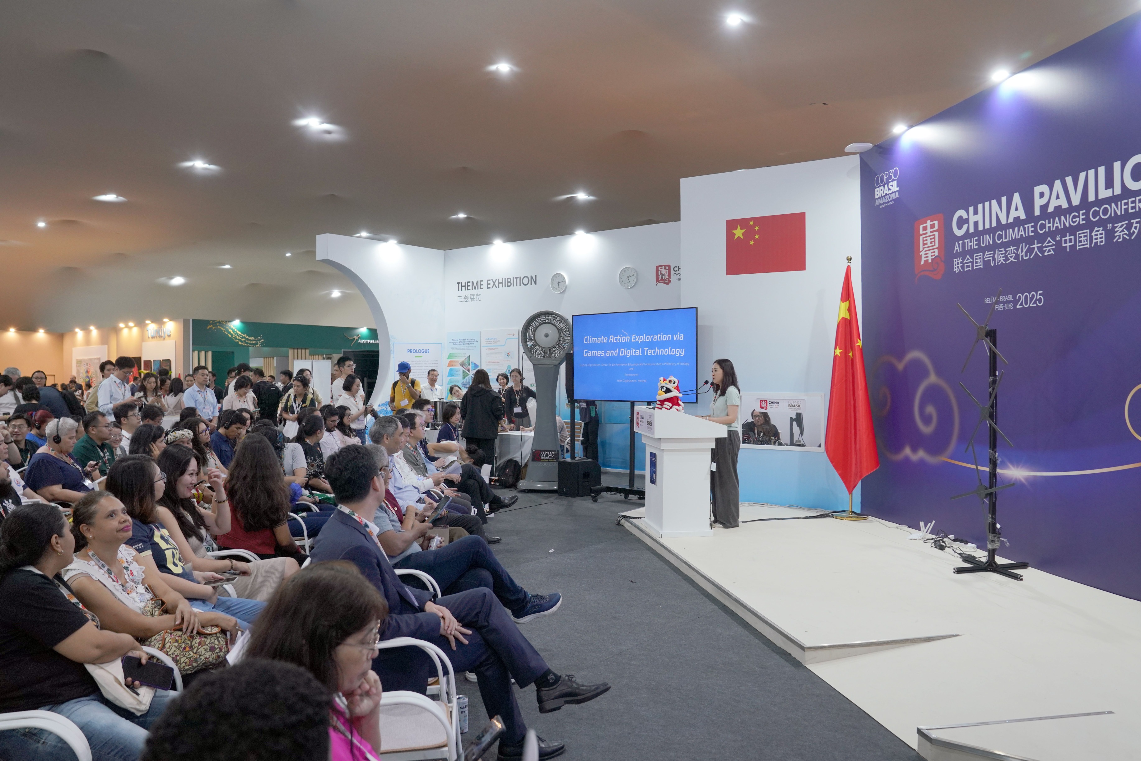 这一幕出现在巴西当地时间11月18日,在贝伦举行的《联合国气候变化框架公约》第三十次缔约方大会(简称“COP30”)“基于游戏等数字技术的气候行动探索”的中国角边会上。