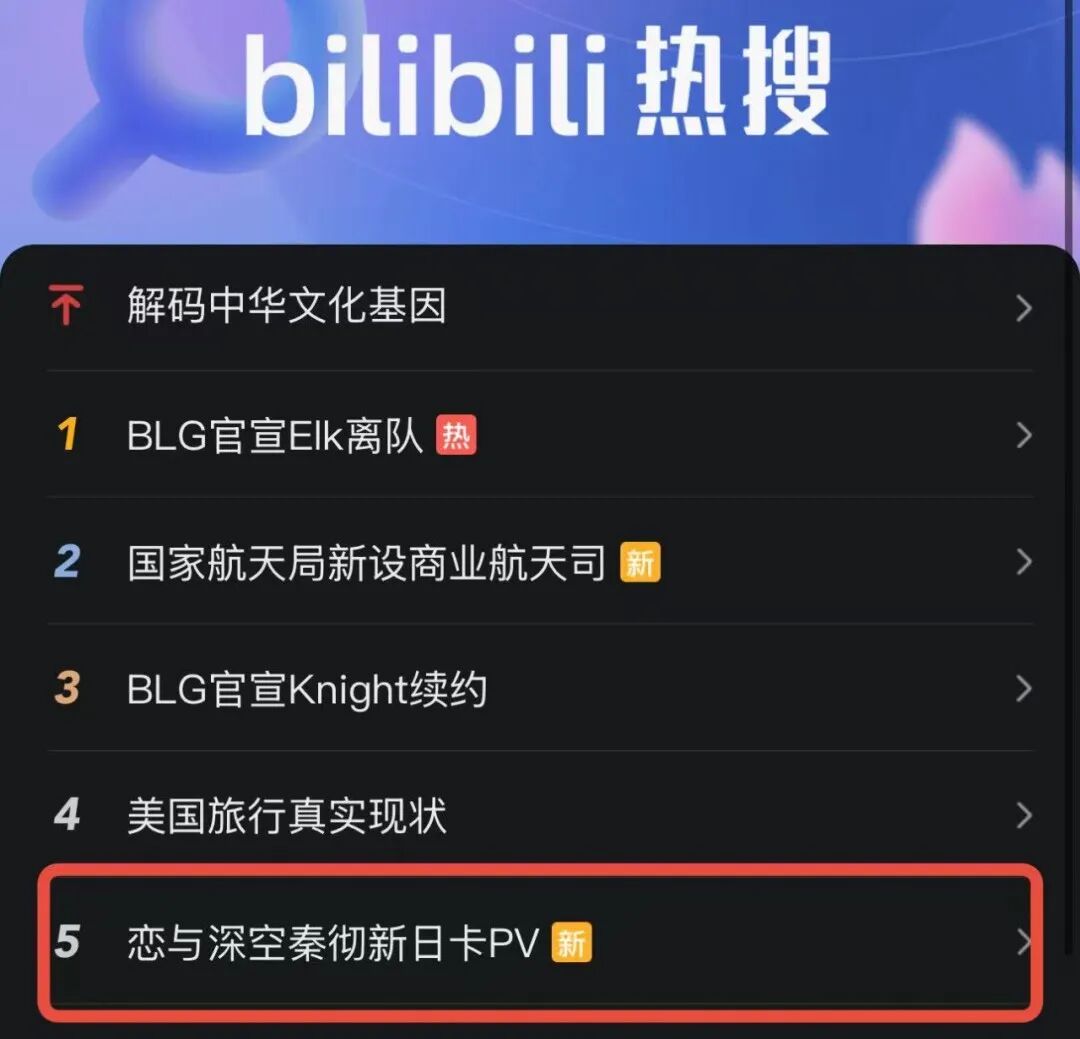 B站pv发布后,空降bilibili热搜TOP 5