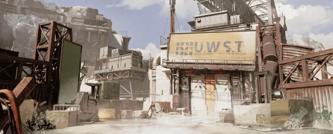 场景还通过设计语言对自然环境和人类造物做了差异:让自然环境尽量还原真实地理地貌,比如光照、道路尺度、植被高度等都是接近真实的;而终末地基地、敌人聚集地等人类造物,则以实用极简、符号象征等来构造未来感。