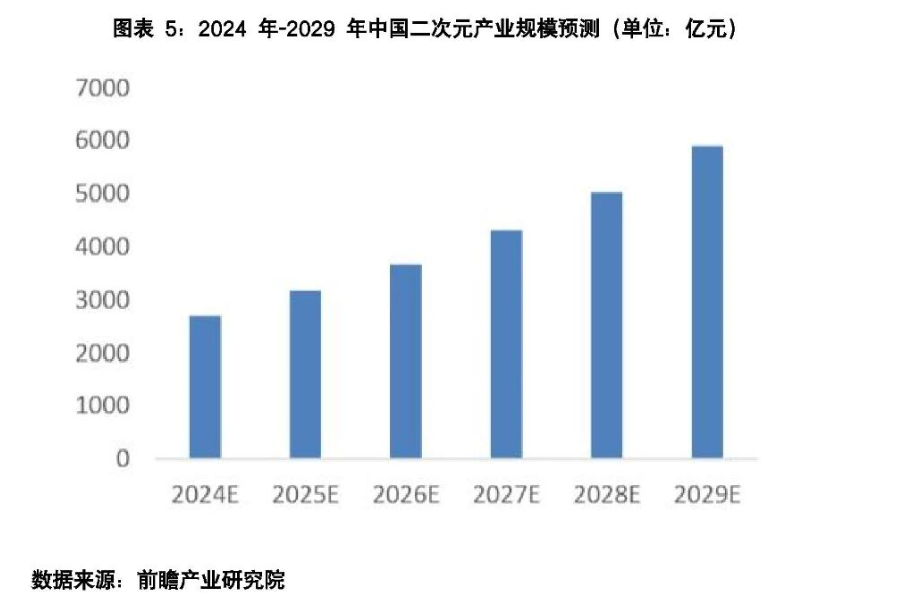 往大了看,中国泛二次元及周边市场规模逐年上升,2019年为2983亿元,2024年则已达到5977亿元。