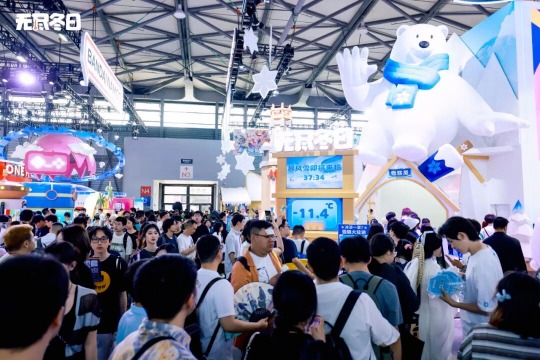 如世纪华通在今年的Chinajoy就设置了《无尽冬日》的展区,除了常规的新玩法试玩,展台还还原了游戏中的核心场景冰雪小镇,带来了cosplay与各类互动小游戏。