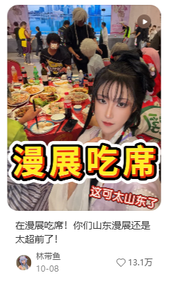 文章开头所提及的山东漫展吃席等活动,也是在二次元之外,兼顾当地的特色,做出更多的花活。低线城市衍生出的县城漫展这个词也伴随“县城经济”“县城美学”一度成为了一种“奇观”,在互联网上出圈。