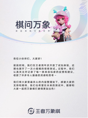 首先是标志性栏目《棋问万象》将全面升级转型为视频日志形式,以更生动、真实的方式,同步开发进展、解读设计逻辑,并对玩家反馈给予更直接、透明的回应。