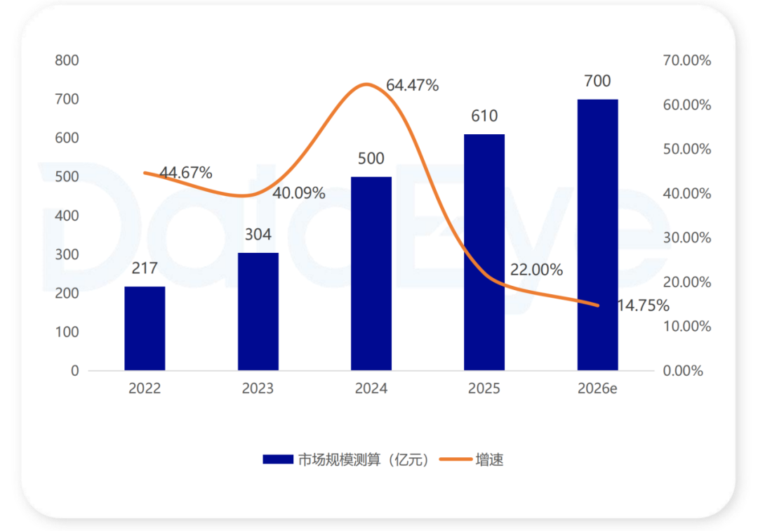 DataEye研究院测算数据显示,2025年国内小游戏市场规模约为610亿元,同比增长 22%,预计2026年市场规模将突破700亿元。