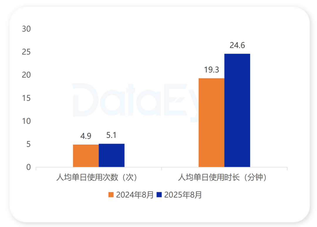 用户不仅来得更多,也停留得更久。数据显示,小游戏行业人均单日使用时长增至24.6分钟,增幅27.2%;启动次数约5.1次,用户黏性在碎片化场景中悄然生长。