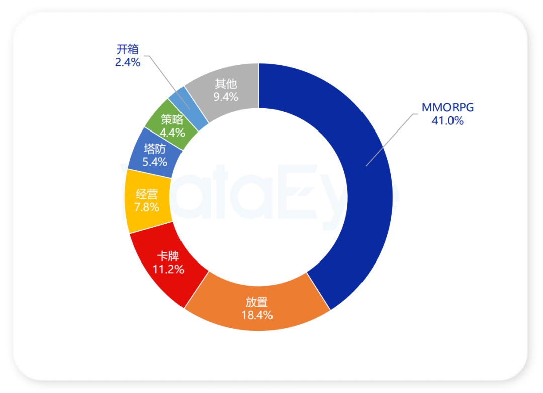 市场集中度进一步提升,投放素材TOP500产品中,TOP3玩法(MMORPG +放置+卡牌)合计占比达70.6%,头部厂商凭借研运一体能力把控大局。