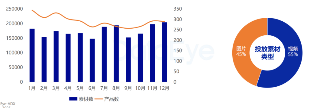 素材量的狂飙并非简单堆砌,其背后是竞争维度从“数量”向“质量”的跃迁。《报告》显示,微信小游戏单月素材量从1月152.46万份增至12月256.83万份,整体涨幅68.4%,5月以285.82万份创下峰值。