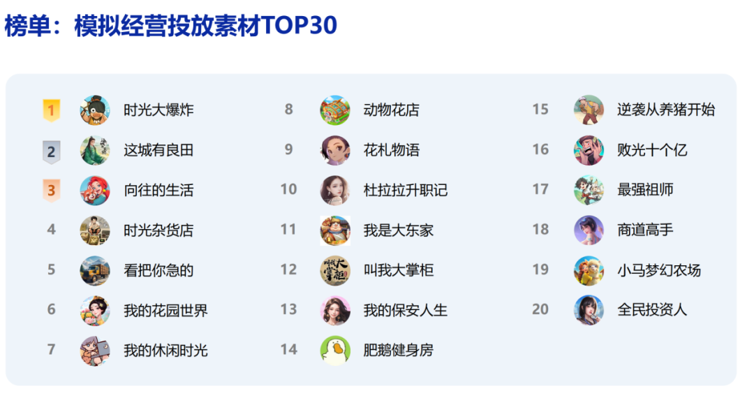例如,三七互娱发行的《时光大爆炸》凭借图片素材为主,视频素材为辅的克制投放,稳健跻身畅销榜TOP5,说明优质内容本身即是高效的流量引擎。