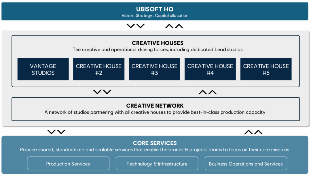 育碧同时公布了公司的全新组织结构:旗下所有工作室将被整合为五大“创意工作室集团(Creative Houses)”,分别负责不同类型与风格的 IP,并对其品牌组合的创意、制作、发行与财务表现承担端到端责任。