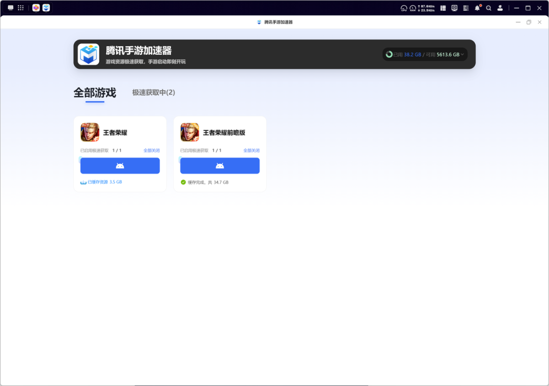而在移动端,可以直接通过手机上的《王者荣耀》游戏内授权NAS,给NAS一键安装“腾讯手游加速器”。设置好之后,以后每个版本的更新都能在NAS后台默默完成下载。