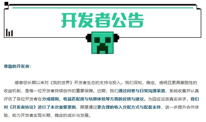 从侧面也能看出来,《我的世界》中国版玩家对优质内容的需求量是很大的。不过,随着生态规模的扩张,旧有的分成规则在面对日益复杂的创作形态时,也逐渐显现出了一些滞后性。