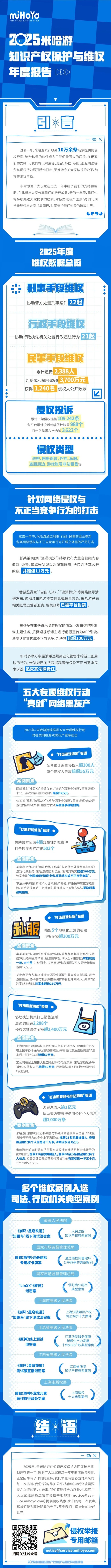 米哈游方面表示,过去一年是知识产权保护领域挑战较多的一年,感谢玩家提供的线索与支持。未来公司将继续跟进侵权线索,并欢迎通过官方渠道举报。