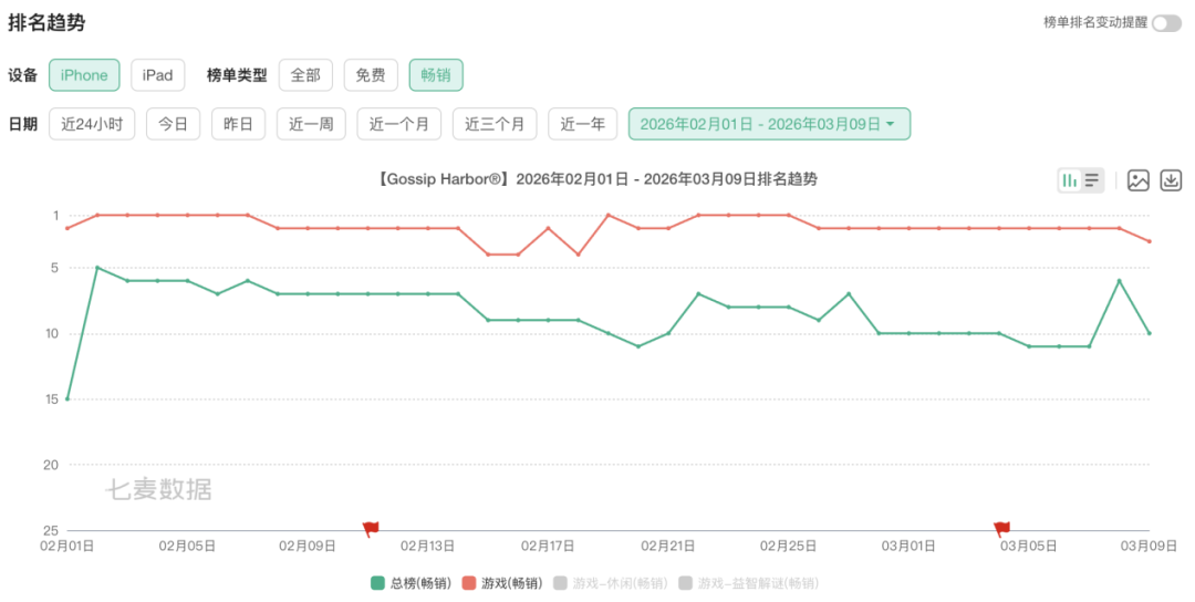 另一方面,以《Gossip Harbor》、《心动小镇》为代表的休闲及生活模拟品类,则凭借精准的节点运营与IP联动,在稳固用户基本盘的同时实现流水逆袭。这种多元化的成功路径,正成为2026年中国手游扬帆出海的新常态。