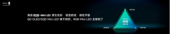 作为全球显示技术的重要突破,海信RGB-Mini LED技术的落地,终结了行业长期以来在画质、健康、能效之间的取舍困境。此前,传统QD-Mini LED、SQD-Mini LED等技术因采用单色背光方案,需通过量子点激发、滤光等二次转换实现色彩呈现,不可避免地出现高亮色彩冲淡、白色光晕明显、能耗偏高、有害蓝光占比大等问题,即便增加控光分区数量,也难以从底层解决这些痛点。海信E7S Pro搭载的全新RGB-Mini LED技术体系,由玲珑真彩背光与信芯AI画质芯片H7构成核心双引擎,通过对光源、算力、光学架构的全链路重构,实现了“始于画质、合于能效、归于健康”的行业突破。