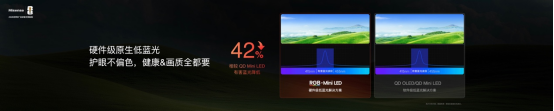 在健康与环保层面,海信E7S Pro实现了技术与责任的双重兼顾。通过硬件级原生低蓝光设计,从发光源头避开有害蓝光波段,相较传统QD-Mini LED、SQD-Mini LED电视,有害蓝光降低42%,无需将画面调黄即可实现护眼效果,兼顾视力保护与画质表现;三原色独立控光控色技术让电视按需分配功率,整机功耗降低30%,同时摒弃量子点技术所需的镉等有害重金属,真正做到无镉零污染,打造绿色环保的家庭观影环境。