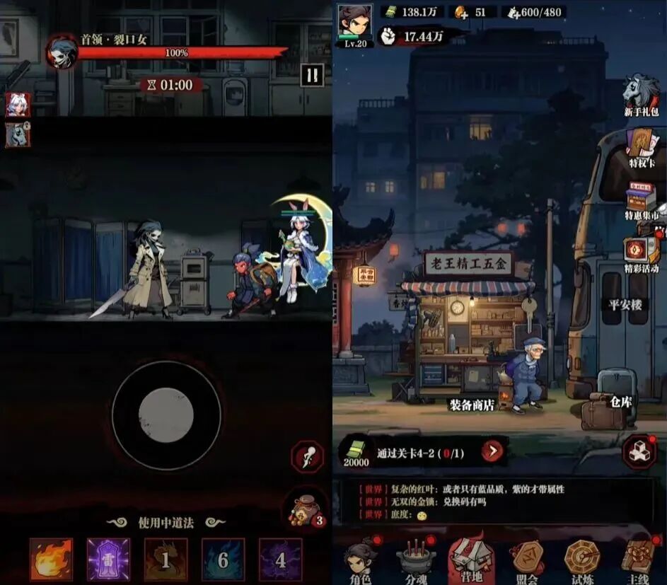 如果看产品的底层逻辑,能发现它采用了大梦龙途非常熟练的数值驱动逻辑,底层逻辑类似《向僵尸开炮》。游戏采用了“射击+肉鸽+搜打撤”的玩法组合,但它在题材上并没有选择常规的僵尸或者废土题材,而是押注了近期更有流量红利的中式微恐。