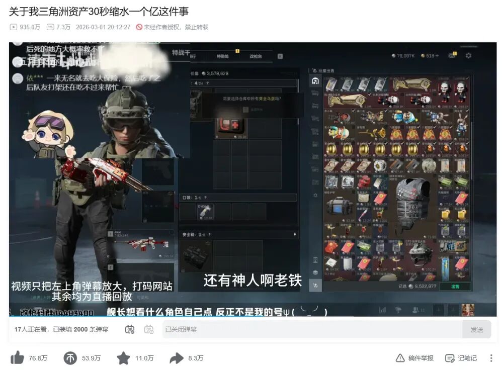 简单回顾一下:3月1日,一名老粉(同时也是长期支持清雨的“舰长”)出于信任,通过扫码让清雨登录自己的《三角洲行动》账号,表示“随便玩”。