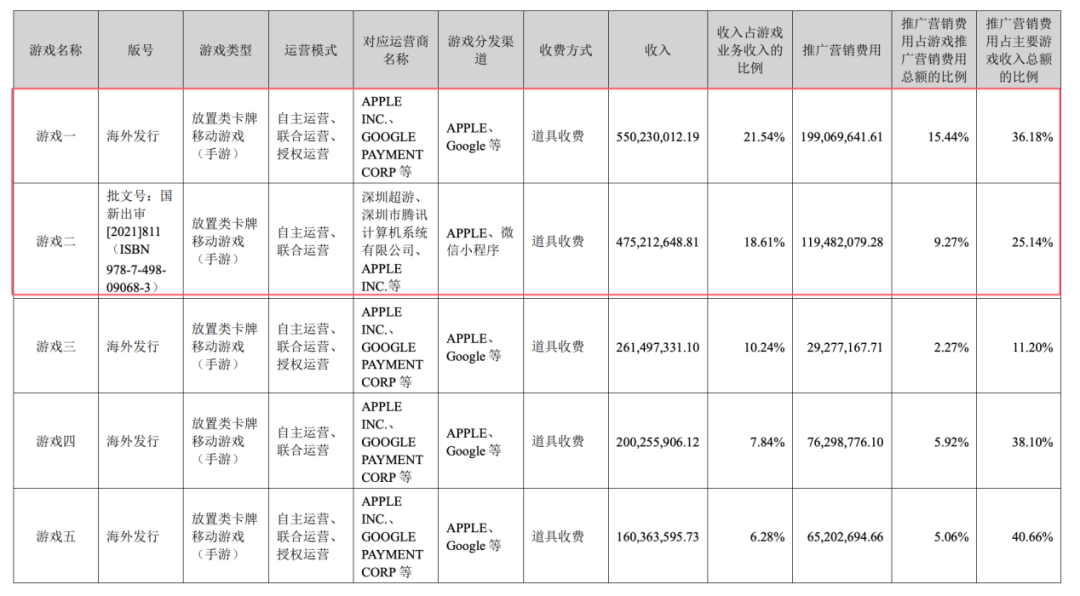 除此之外,经典游戏《Hero Clash》(即财报披露的游戏一)全年贡献收入5.50亿元,仍是公司第一大收入来源。