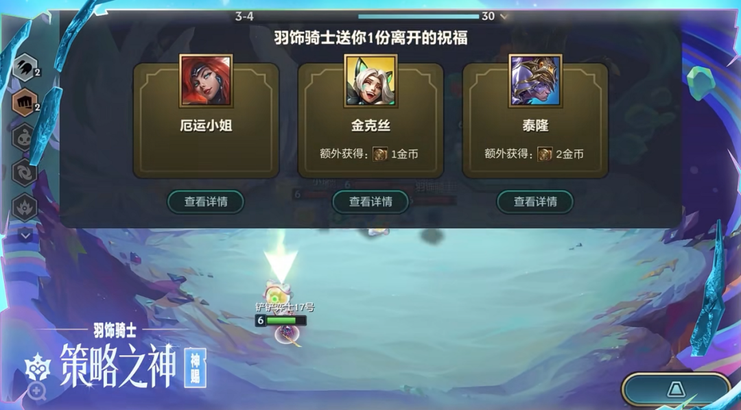 针对这一点,Kate 给出的回答也相当明确。团队在测试阶段已经收到了大量类似反馈,因此在星神领域中加入了补偿设计,羽饰骑士的祝福会为连败玩家提供额外金币和高费弈子的获取路径。