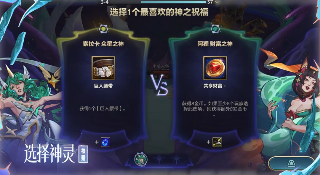 在新的机制中,玩家不再进入公共区域抢夺弈子或装备,而是在特定回合面对两位“星神”,进行二选一决策。