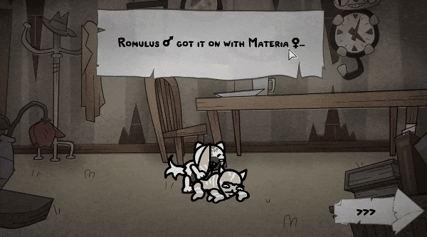 这套繁育系统表面上看着很简单,只要让不同的猫在房间里待在一起,点击度过这一天就会繁育出新的猫。