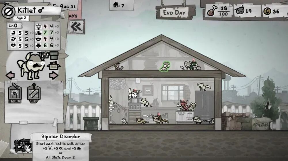 好在,管理猫群的手段还是挺多的,比如你可以把那些多余的或者品质不好的猫捐给不同的NPC,换回一些钱或者家具来升级家园。即使你出门冒险失败了,只要家里还有优秀的血脉在,你就会觉得整体进度是在往前走的,并不会完全白忙活。
