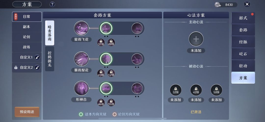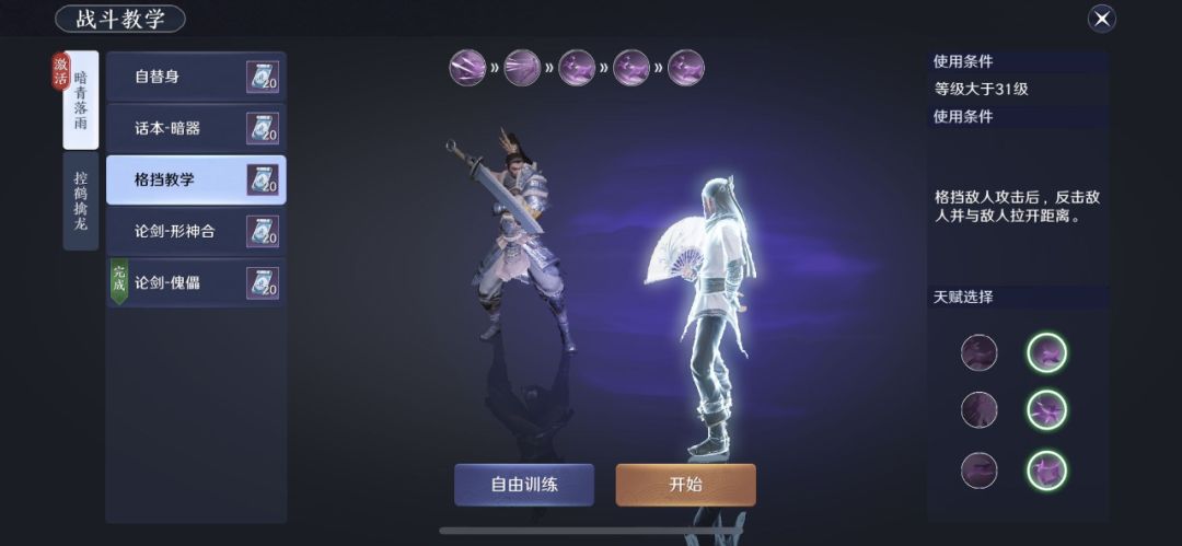 就笔者使用的唐门角色为例,玩家初期可以选择“暗器流”与“控制流”两种套路,两种套路在实际应用中的连招思路是全然不同的。