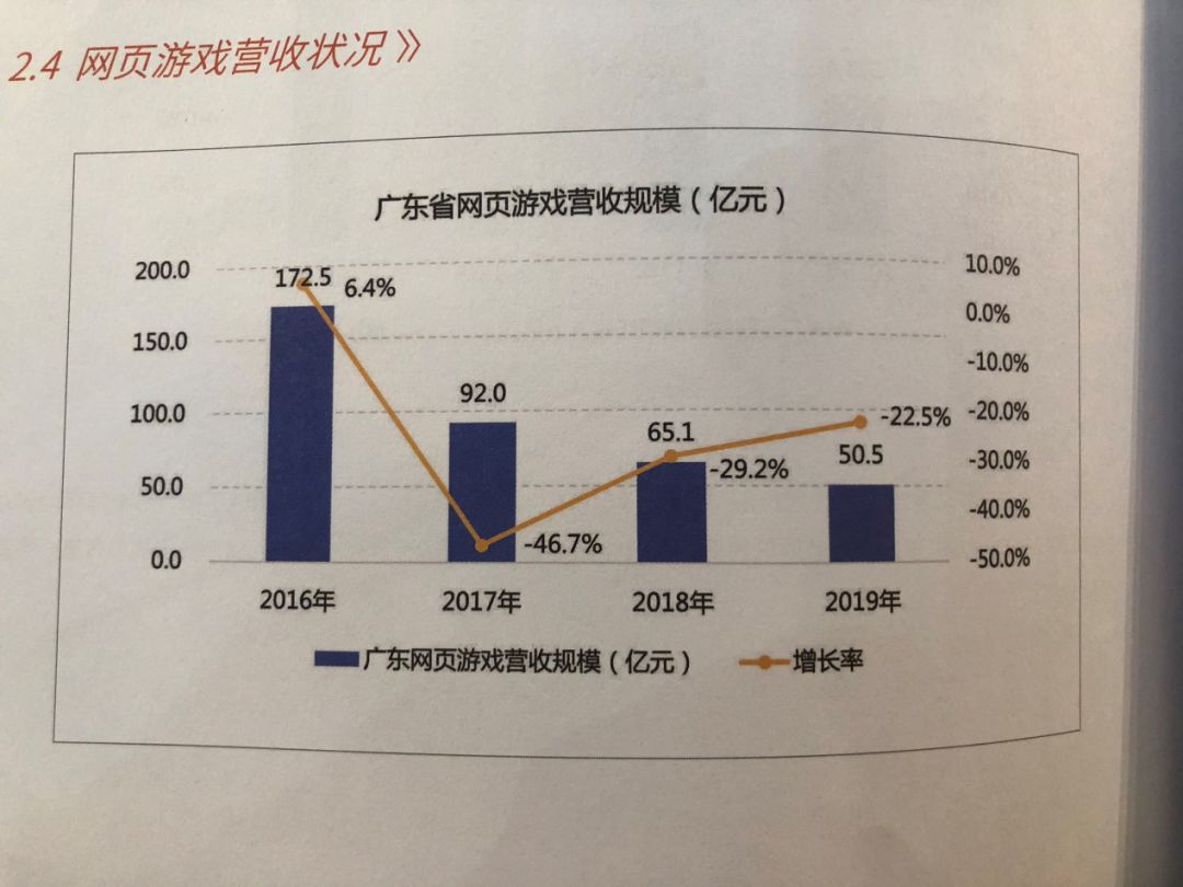 2019年,广东省网页游戏行业营收规模仅为50.5亿元,同比2018年下降22.5%。网页游戏营收规模持续下滑,主要在于游戏用户的迁移,大量游戏企业转型开发移动端产品。另一方面,则是受版号的影响,2019年广东省仅有1款新页游通过审批。