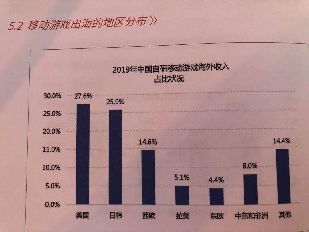 2019年中国移动游戏出海收入总体规模增幅较大,国产移动游戏出海的主要目标市场为市场美国、日韩地区,这些地区国产游戏收入总规模均超过20亿美元。