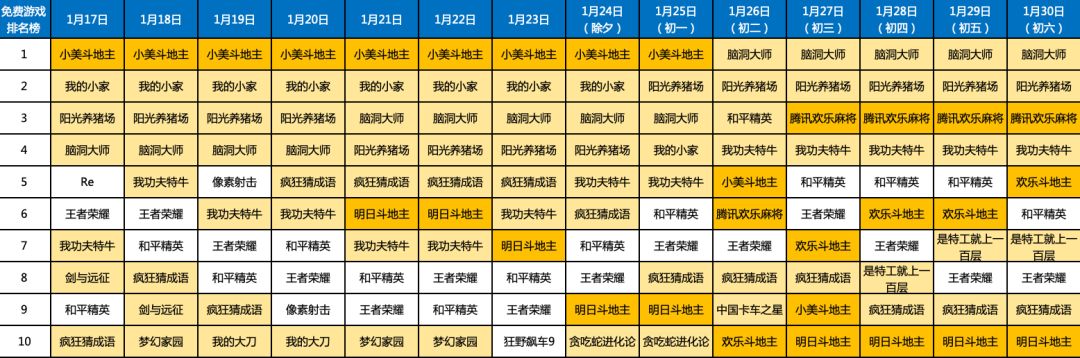 2020年春节期间免费游戏日排名榜单(资料来源:七麦数据,申万宏源研究)
