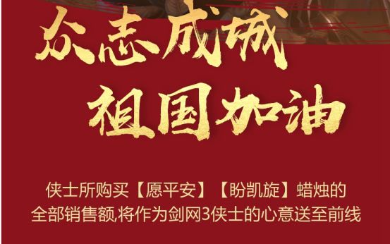 同时,游戏不单鼓舞了士气,更为玩家拓展了参与支援的渠道,让“宅在家里拯救世界”的幻想成为了真实。如《波西亚时光》、《剑侠情缘网络版3》等产品,在近期都开展了捐赠销售额支援对抗疫情的活动。玩家近期在游戏中的消费,除了享受游戏的快乐外,更是对武汉等地提供的直接援助。这样具有参与感的设计,提升了玩家的动力与热情,让在家“闭关”也充满了积极意义。